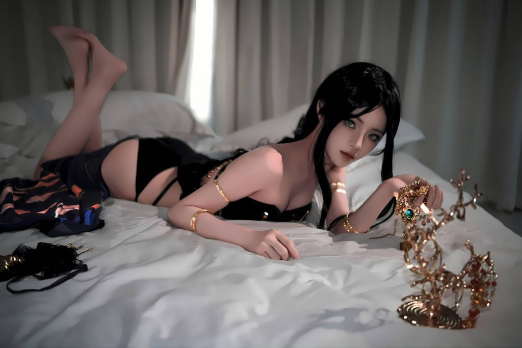 刚柔并济的演绎:风铃公主并非柔弱的花朵,而是一位能够驰骋沙场的女战士。桜桃喵在这套作品中,时而手持弯刀摆出凌厉的战斗姿态,眼神犀利如鹰;时而又展现出公主的柔美与温婉,笑容如大漠落日般迷人。这种“战力与颜值并存”的反差感,被她拿捏得恰到好处。