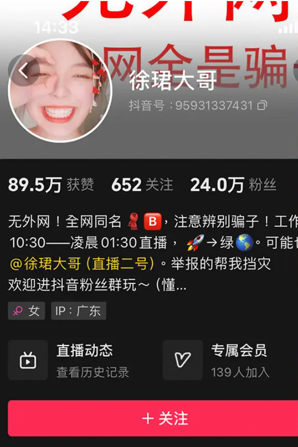 在抖音这个光怪陆离的流量场里,账号“徐珺大哥”(抖音号:95931337431)的存在显得尤为特别。