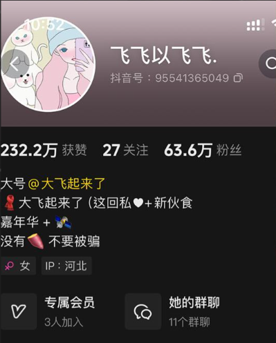 抖音号:22514191177,IP属地:河北,直播仅在这里@飞飞以飞飞,另一个有趣的我在XEva(ID91177)微博:大飞起来了~